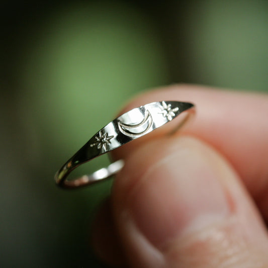 Silver Moon & Stars ring